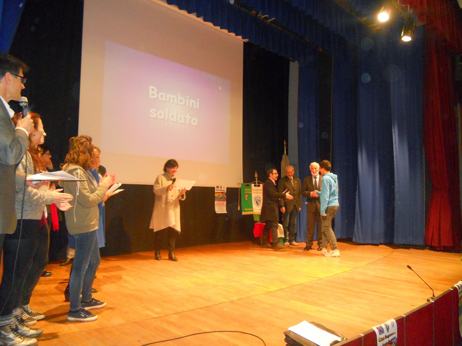 anno. I ragazzi, veri protagonisti dell’evento applaudono. Infatti sul palco